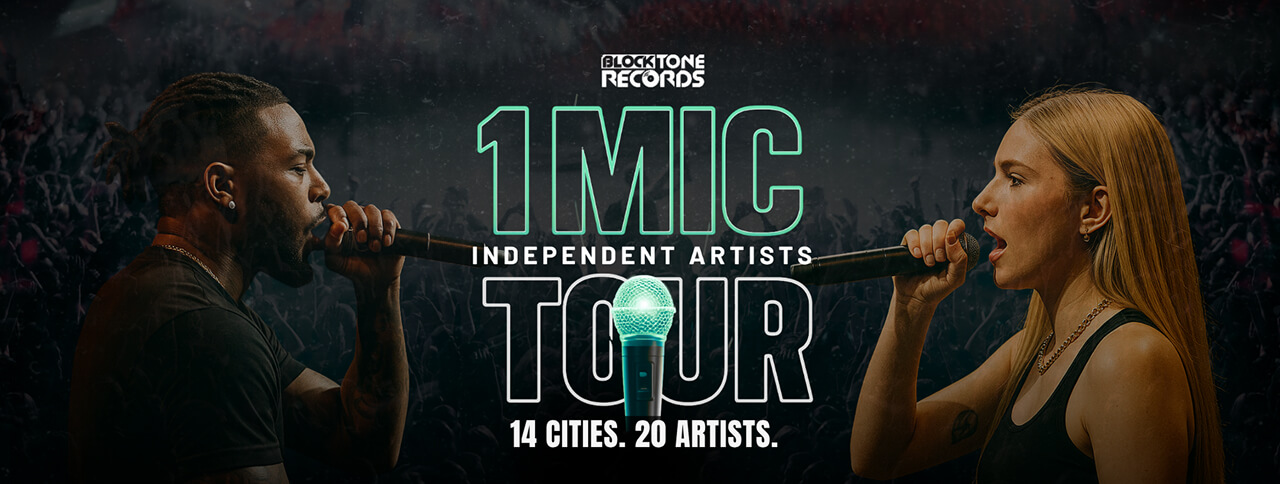Presented by Blocktone Records, The 1 Mic Tour is a 14-city national concert series showcasing 20 viral independent artists from TikTok, Instagram, and social media platforms. Artists will open for a major headliner in each city, with every show streamed live for the world to see.
